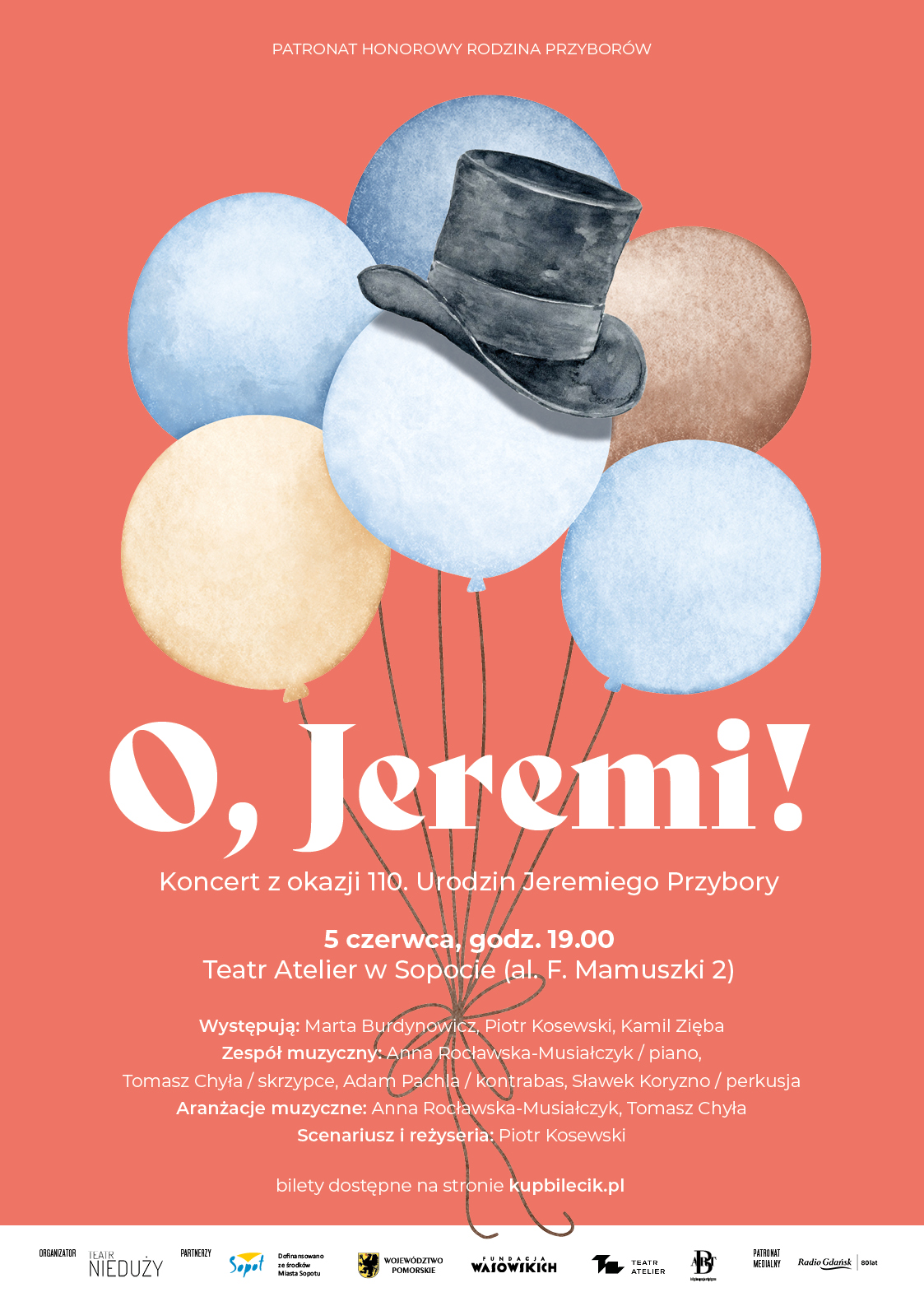 Chociaż 110. urodziny Jeremiego Przybory przypadają na grudzień, to Teatr Nieduży zaczął świętowanie tego jubileuszu już w czerwcu. Koncert „O, Jeremi!”, który upamiętnił Mistrza, doskonałego poetę polskiej piosenki i współtwórcę legendarnego Kabaretu Starszych Panów. Podczas koncertu wystąpili Marta Burdynowicz, Piotr Kosewski i Kamil Zięba, przy akompaniamencie zespołu muzycznego w składzie: Anna Rocławska-Musiałczyk (piano), Tomasz Chyła (skrzypce), Adam Pachla (kontrabas), Sławek Koryzno (perkusja)